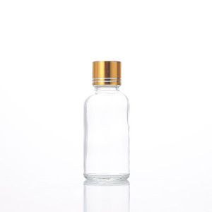 30ml; ゴールドタンジェントキャップ + 中栓 + 透明ボトル; ガラス