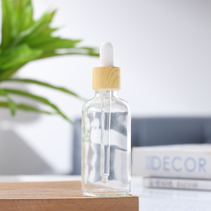 50ml;木目調サークル+白いプラスチックチップドロッパー+透明ボトル;ガラス