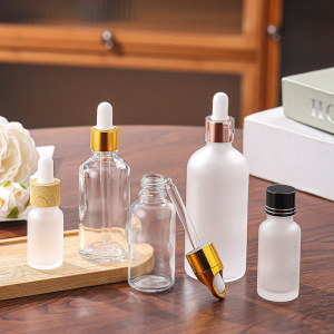 透明つや消しエッセンシャルオイルボトル増粘50ml化粧品エッセンス原液透明ガラスボトルスポイト空ボトルクロスボーダー