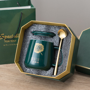 低葉クリエイティブカップ家庭用コーヒーカップ男女カップ蓋付きスプーンカップル水マグカップ源工場