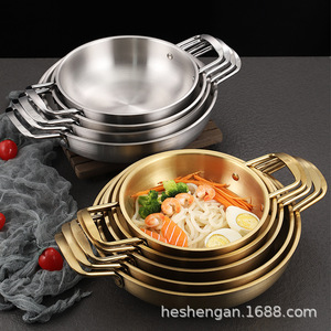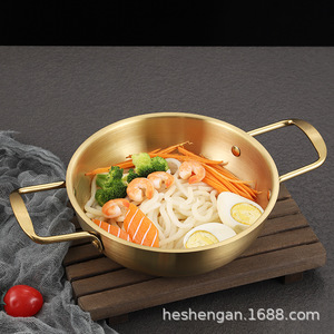 韓国式カップラーメン鍋双耳部隊鍋韓国金色ラーメン鍋海鮮鍋厚いステンレススープ鍋