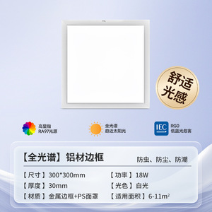 【フルスペクトルナローエッジ】18W 300*300mm白色光