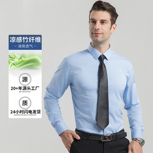 高級な新型のアイロンのない竹繊維の長袖のシャツの紳士服の純白の男女は身を修めてしわの職業のビジネスの秋の服に抵抗します。