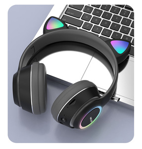 新しいかわいい猫の耳のイヤホンrgbの走馬灯の無線のヘッドセット式のbluetoothのゲームのイヤホンはカードを挿して通用することができます。