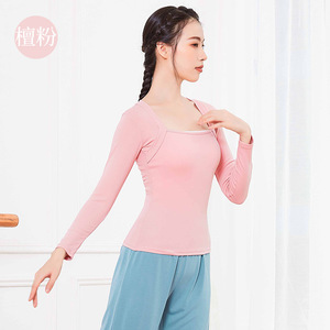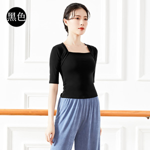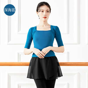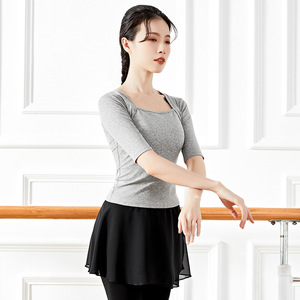 女性用ダンス練習服 大人用 レトロバレエ風 教師用体操服 中袖 練習用ツーピース風トップス