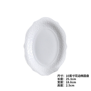 レース皿レトロins北欧風食器陶磁器家庭用デザート皿洋食ステーキ皿純色餃子皿