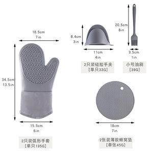 セット5-グレー (YO斜めロンググローブ*1+32gハンドクリップ*1+薄型ハニカムパッド*1+39gブラシ*1+フードクリップブラック*1)