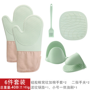 セット9-ミントグリーン(125gショートハニカムグローブ*2+32gハンドクリップ*2+純シリコン波柄鍋つかみ*1)