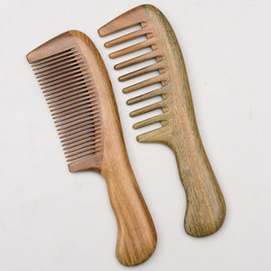 卸売りの緑檀の木の櫛の玉檀の香の櫛の丸い柄は大きいサイズの幅の歯のマッサージの櫛の太鼓の柄を作って厚くします。