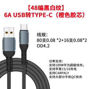 【48本白黒パターン】6A USB to TYPE-C(オレンジラバーコア)