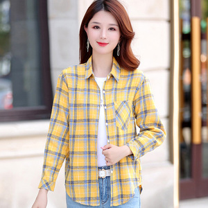 女性の長袖の綿の大きいサイズの格子のシャツの女性のファッションの修身はファッションの婦人服の上着のコートに合わせます。
