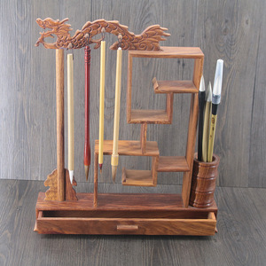 文房四宝のペンホルダーのペンは赤い木を掛けて多く蛇口のペンを使って大きい小さいサイズの手羽の木のプラスチックの筆の棚を置いて卸売りします。