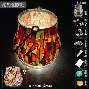 ガラスモザイクキャンドルホルダーDIY素材パック 中秋節ランプ 手作り親子知育玩具 クリスタル発光ギフト