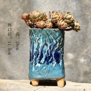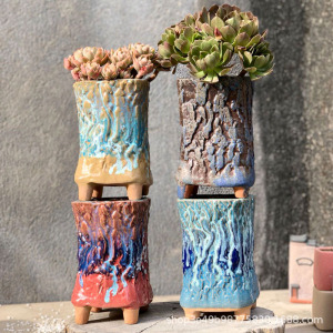 麦飯石多肉植木鉢爆裂角口老杭法師足付きレトロ創意陶磁方盆個性