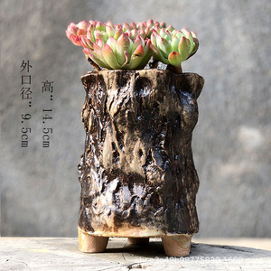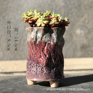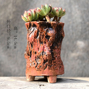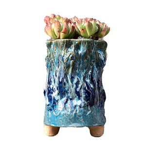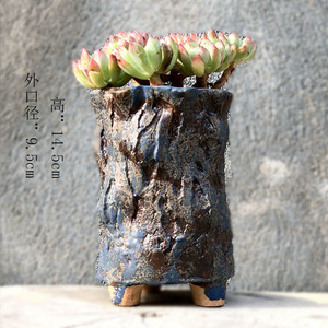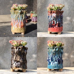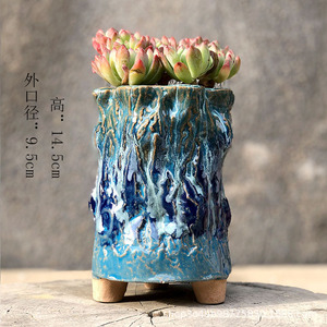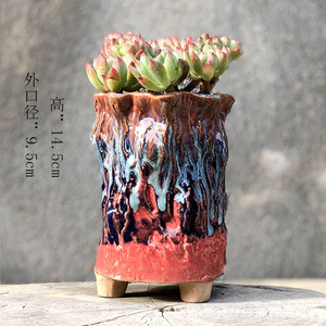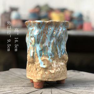 麦飯石多肉植木鉢爆裂窯変紋老杭法師流釉薬足付きレトロ創意陶磁個性