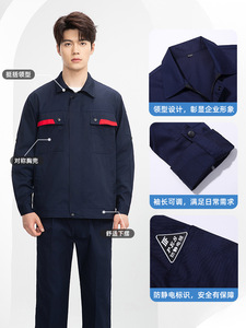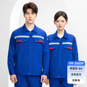 静電気防止作業服セットカスタム男性夏長袖薄いガソリンスタンド電子化工場輸送労働保険服