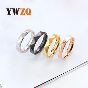 国境を越えたチタン鋼の指輪は男女シンプルで個性的な4mmの磨かれた菱のカップルがステンレスのアクセサリーメーカーを警戒している