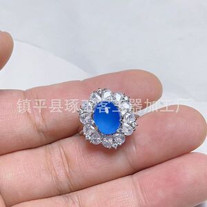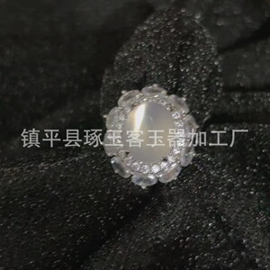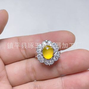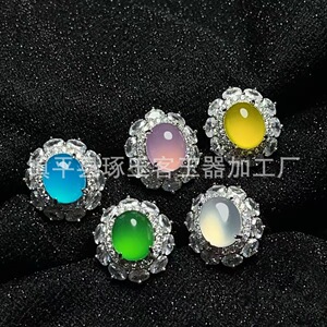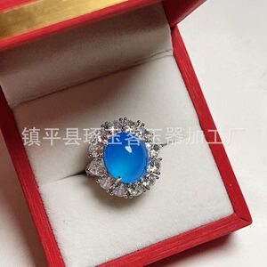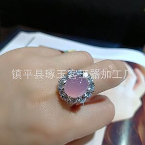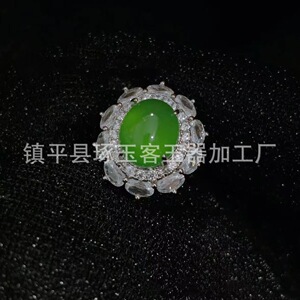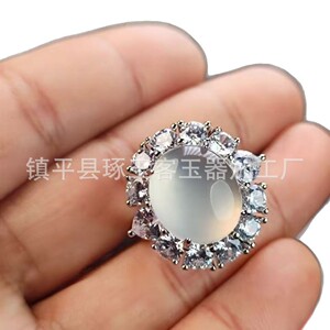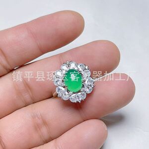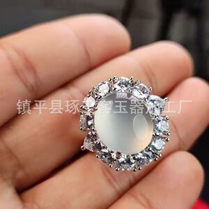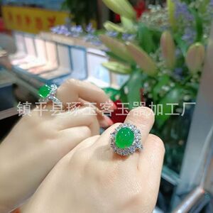 ブラジルアイスグリーンカルセドニーリング瑪瑙鳩の卵925シルバーメッキ象嵌レディースリングは翡翠翡翠リングに匹敵します