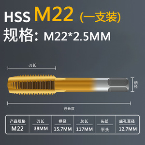 【標準歯間距離】機用タップチタン製直槽タップ6542高速鋼製タップ高硬度全研磨製