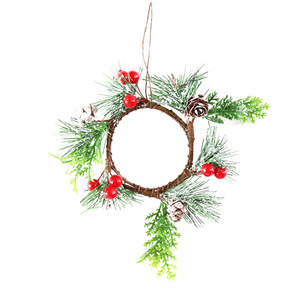 赤い実の水草と松葉の小さなリース