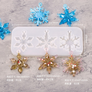 水晶滴ゴムdiyシリコンゴム金型クリスマス雪花ペンダント三連雪花アクセサリーペンダント穴付き切り面雪花