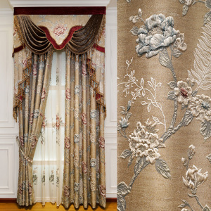 カーテン生地メーカー直販客間寝室遮光大気3dレリーフカーテンヨーロッパ式高級カーテンジャカード