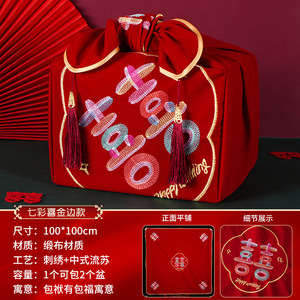 結婚の布巾、結婚式用品、喜盆の包み、結婚式の布、花柄の赤い布、花嫁の持参金、結婚式のお菓子、赤い封筒