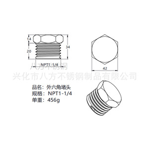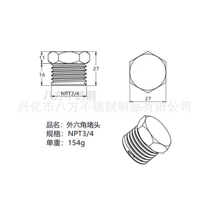 304六角プラグステンレス外糸油栓喉頭プラグ油管プラグ1分2分3分4分6分1インチ