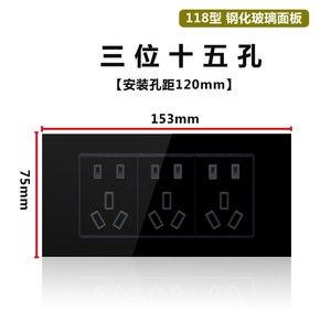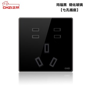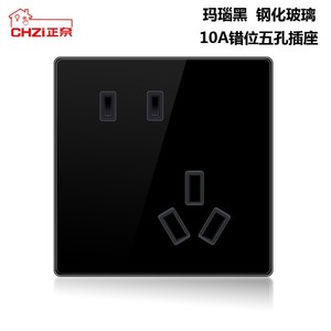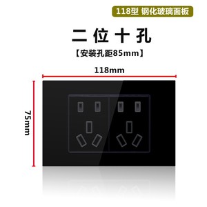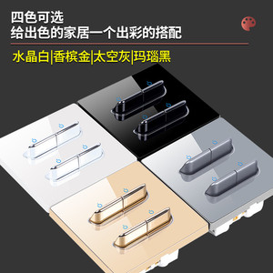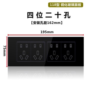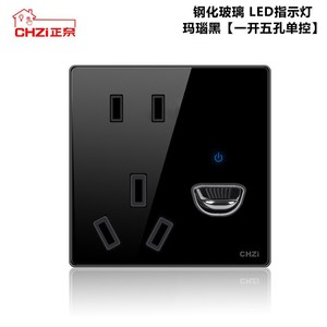 黒色強化ガラススイッチレバーパネルledランプ付き86型暗装五穴ソケットセット