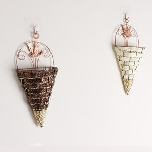 シミュレーション花瓶花籠三角壁掛け鉄芸藤編み壁掛け花器インテリア吊りバスケット花芸三角バスケット