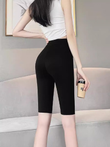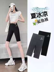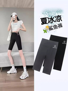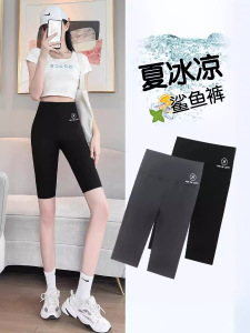 夏のサメの皮のレギンスの女性は薄いタイプの高腰を着てお尻を上げて腹の弾力の大きいサイズの中でズボンのヨガの5分のズボンを収めます。