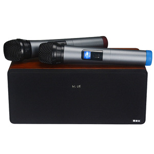 テレビカラオケホーム ktv Bluetooth オーディオワイヤレスマイクプロジェクターハイパワー木製スピーカーデュアルマイク付き