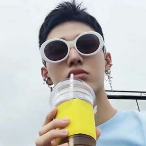 周揚青同モデルサングラス女gd権志龍白楕円個性欧米街拍ヒップホップトランポリンサングラス男