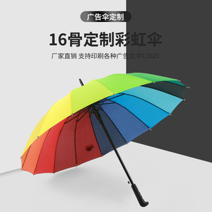 メーカー卸売り16本の長柄ストレートレインボー傘ビジネス保険プレゼント広告傘印刷ロゴ