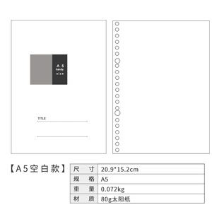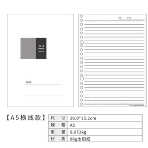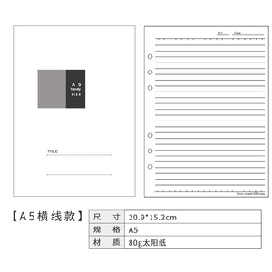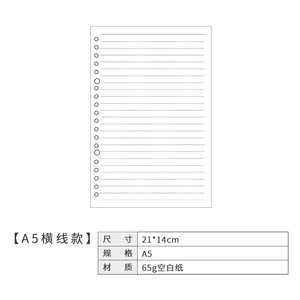 6穴のノートの中のページのa5のルーズリーフは取り外し可能です。