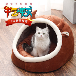 猫小屋冬保温四季通用猫屋半閉鎖式子猫ベッド家別荘犬小屋ペット用品