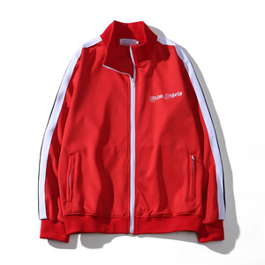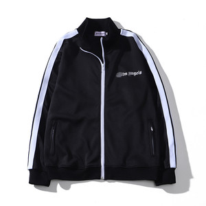 潮牌卸売り側辺白黒縞男女ゆるいコートパーム天使キャンパスレトロ運動レジャージャケット