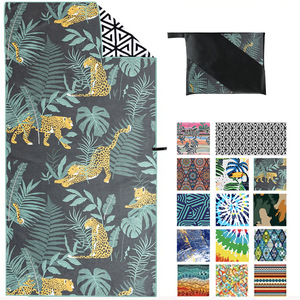 両面フリース速乾プリントビーチタオル 大人用水泳タオル 海外貿易用超極細繊維ビーチタオル