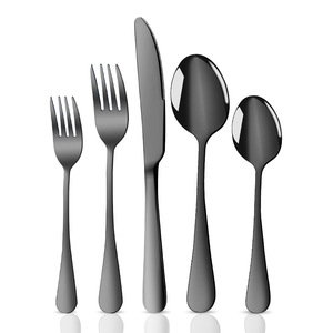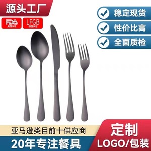 アマゾンクロスボーダー1010ステンレス食器セットチタンメッキマット黒洋食ステーキナイフフォークスプーン5セット