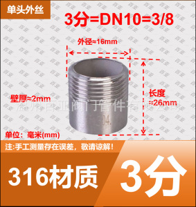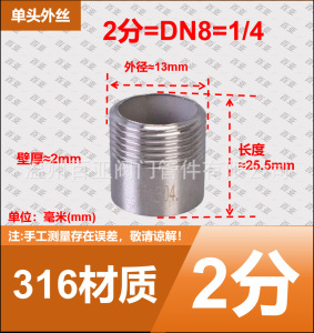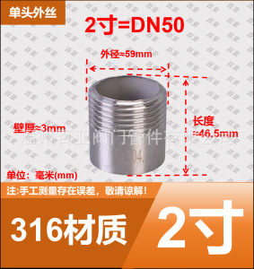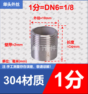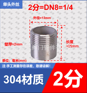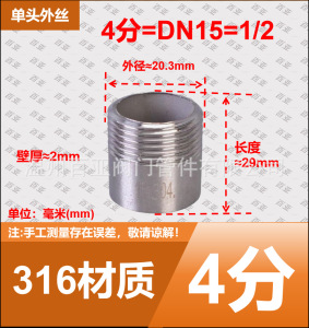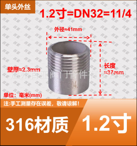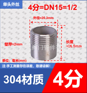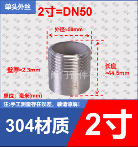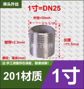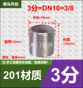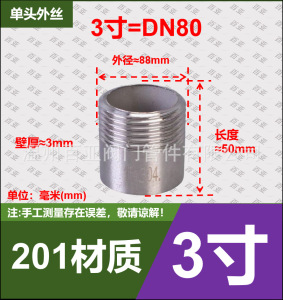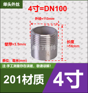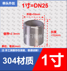 201/304/316lステンレス溶接単頭糸ねじ管継手直通外糸2分4分1インチ2インチ