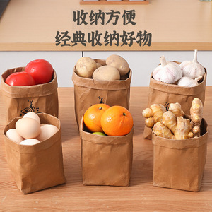 庭墨水洗い可クラフト紙収納袋ギフトバッグ角底袋果物冷蔵庫収納袋クラフト紙