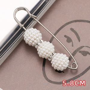 ピン33 # サイズホワイトビーズシルバーピン3.8cm
