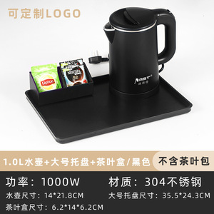 ホテルの客室0.8リットルのミニ電気ポット黒い白いホテルの二重湯たんぽトレイはロゴを印刷できます