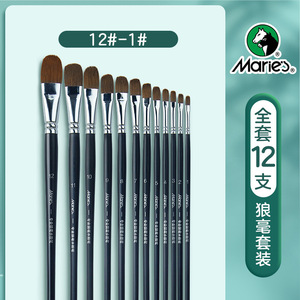 マリ水チョーク画ペン卸売りG1860油絵アクリル画筆美術生狼ミリ平頭筆セット画筆