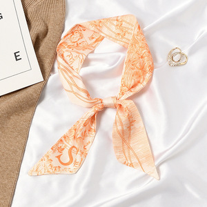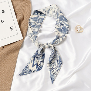 シルクタオルの小さい長いストリップの女性の百合春秋のスタイルの洋風のファッションの細い細い襟のタオルのヘアバンドの26アルファベットのリボンのマフラーの春