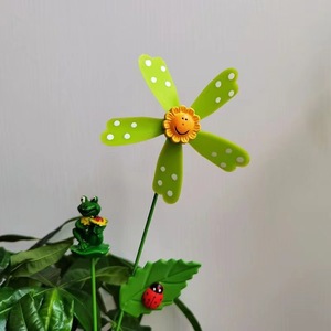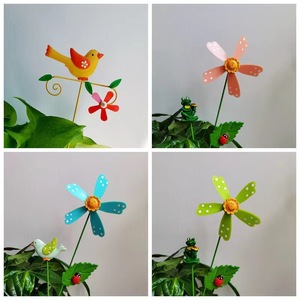 国境を越えて鉢植え多肉植物の装飾鉄芸回転風車のミツバチ人小鳥カエルの装飾品を提供する