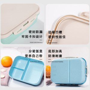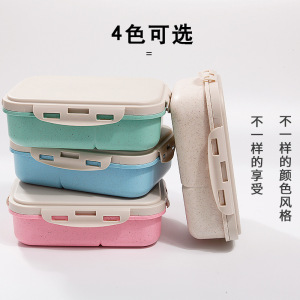 新しい和風カトラリーボックスプラスチックランチボックスランチボックスプリントロゴ学生ランチボックス子供用コンパートメントランチボックス