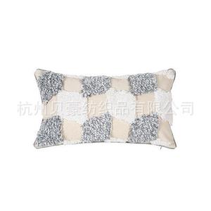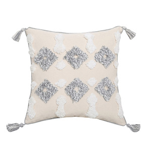源工場製 ベルベット刺繍タッセル枕 インド風民宿ソファ 幾何学模様タッセルクッション 腰枕カバー