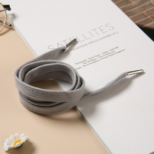 1.3m白黒の灰色のポリエステル綿の平縄の金属の弾頭の衛衣の帽子のひものビーチのズボンの腰のひもの靴のひも