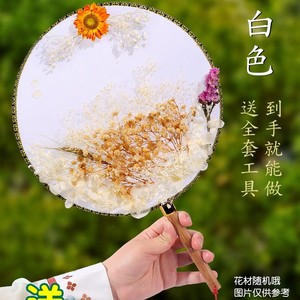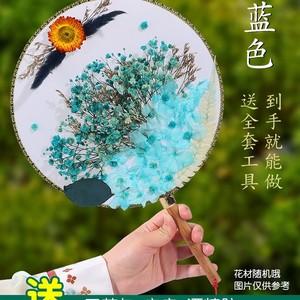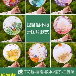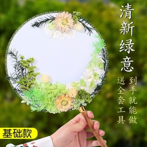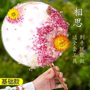 国慶節と中秋節のプリザーブドフラワー扇子、ドライフラワーDIY素材パック、扇子、子供向けチームビルディング、手作りギフト